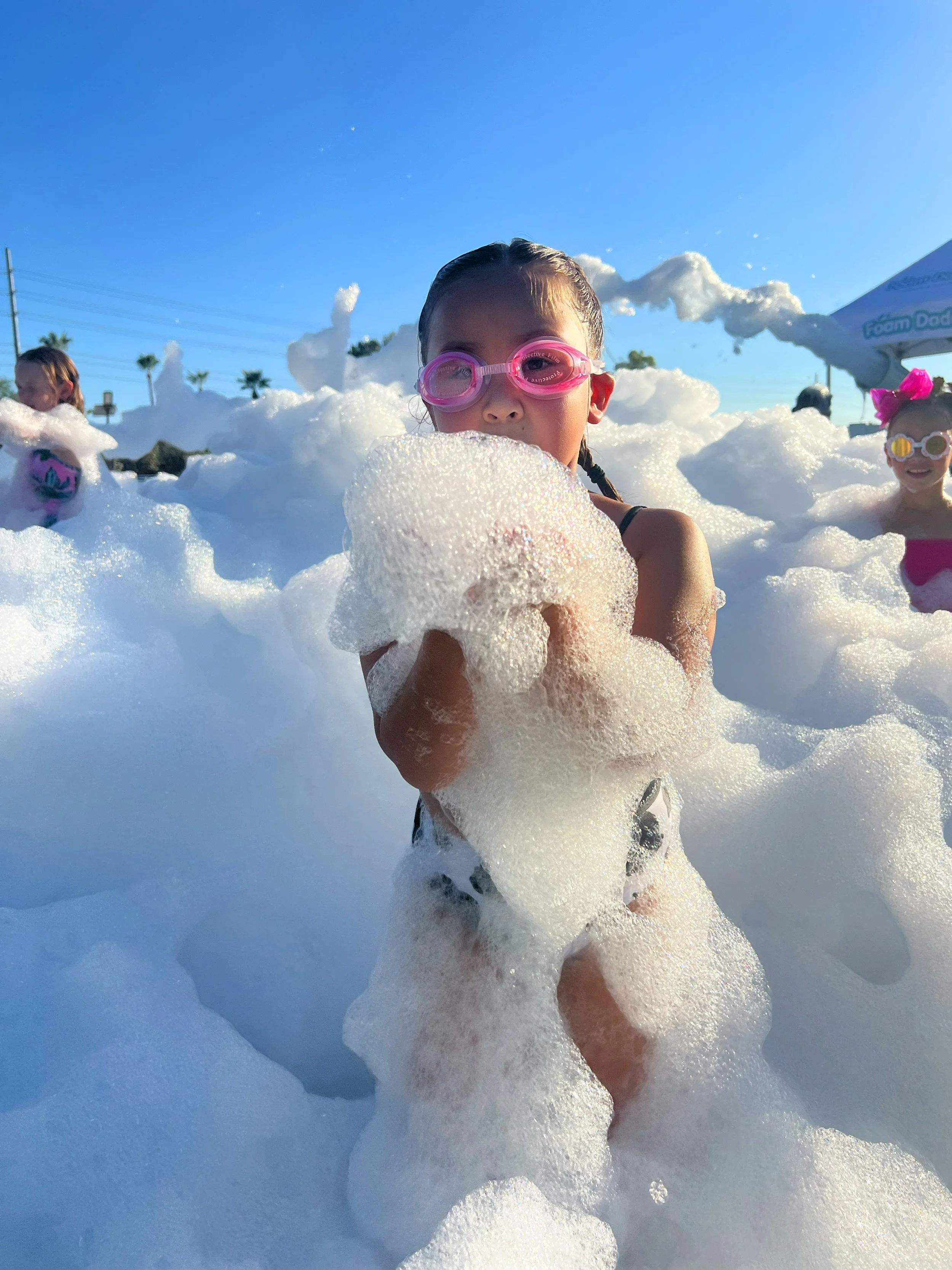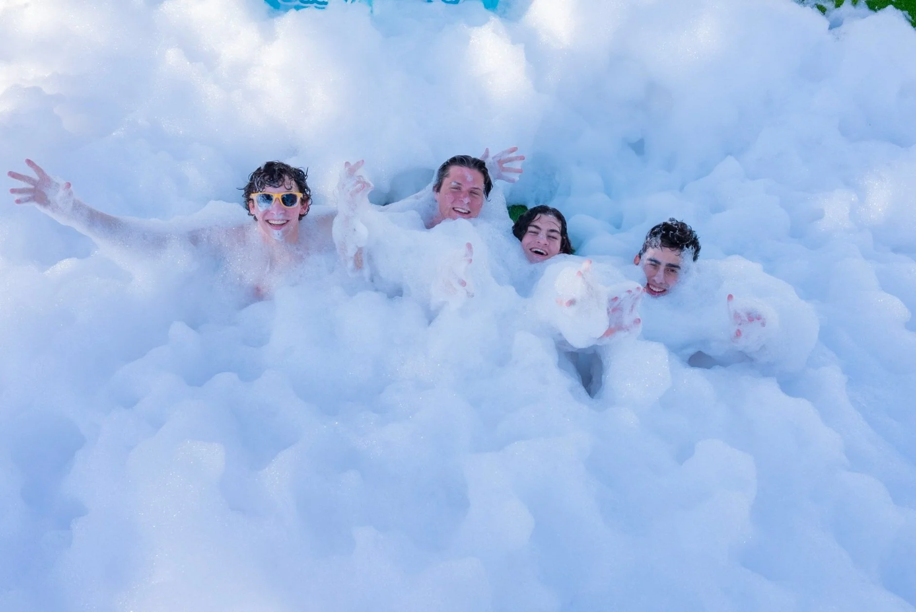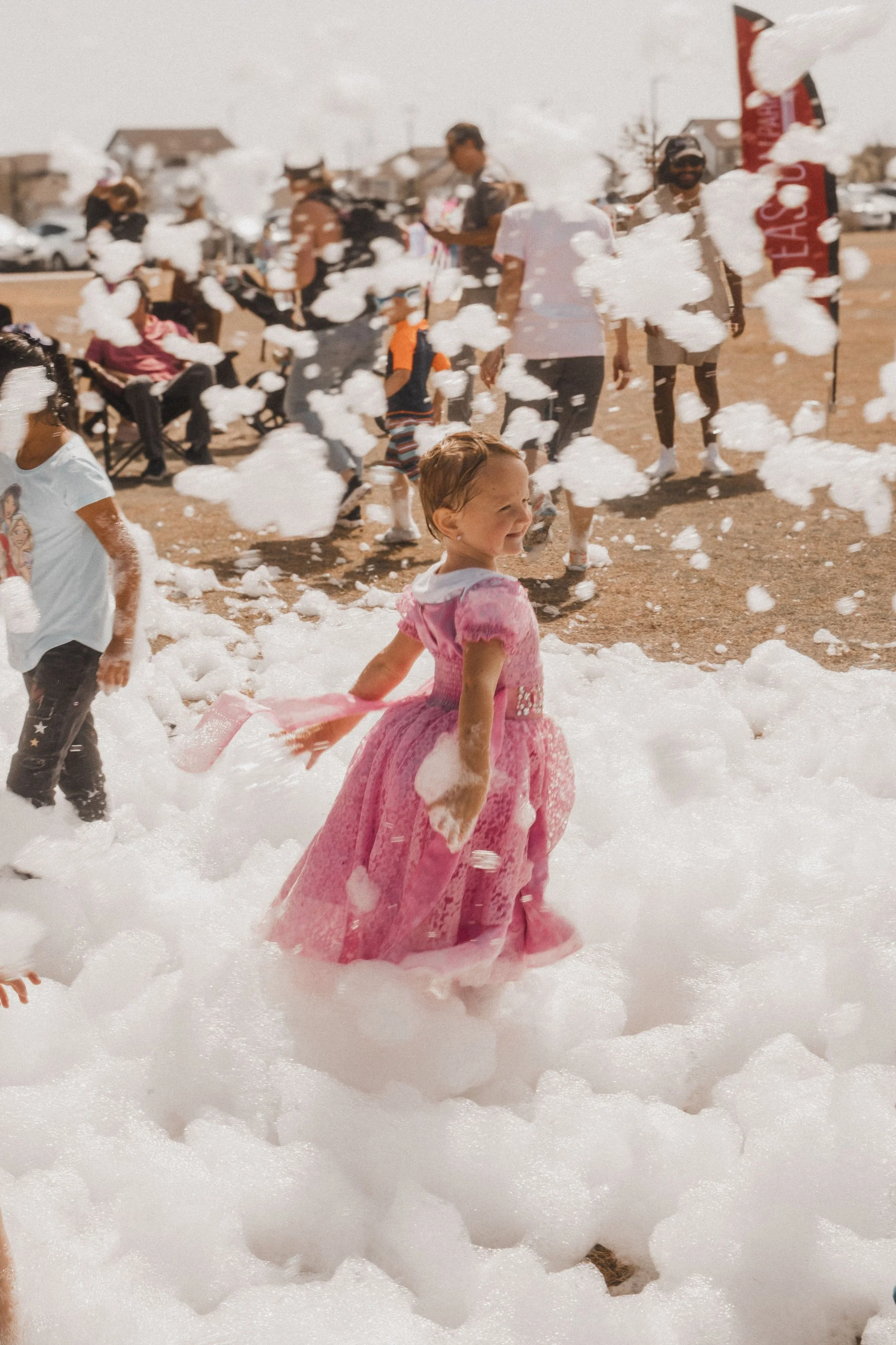 A Foamista foam party is like a dance party taken to the next level - picture you and your friends dancing, laughing and splashing in mountains of foam.